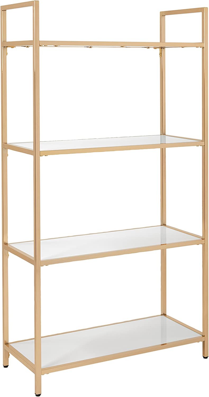 OSP Home Furnishings Alios Bookcase, White Glossy Finish with Gold Plated Base